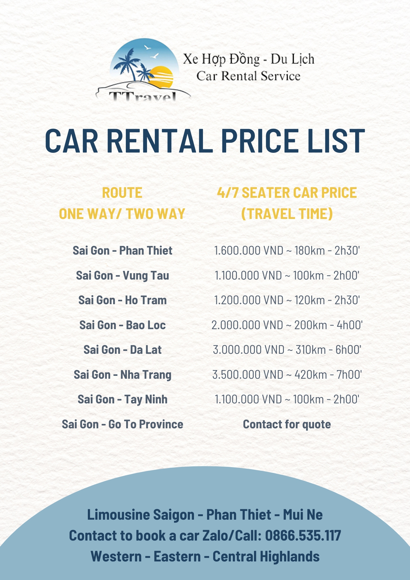 Best Price for TTravel Limousine Car Rental Saigon Phan Thiet